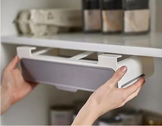 Vous n'êtes pas fan de perceuse ? Parfait, vous n'en aurez pas besoin. Ce rangement se fixe sans percer grâce à un adhésif ultra-résistant. Il s'adapte à toutes les cuisines dont les meubles dépassent 32 cm de large. L'installation prend moins de temps qu'une pause café. Vous positionnez le support sous votre étagère existante, vous appuyez fermement, et le tour est joué. Aucun outil, aucune compétence technique, aucun stress. Le système coulissant glisse comme du velours pour vous offrir un accès direct à vos condiments favoris.